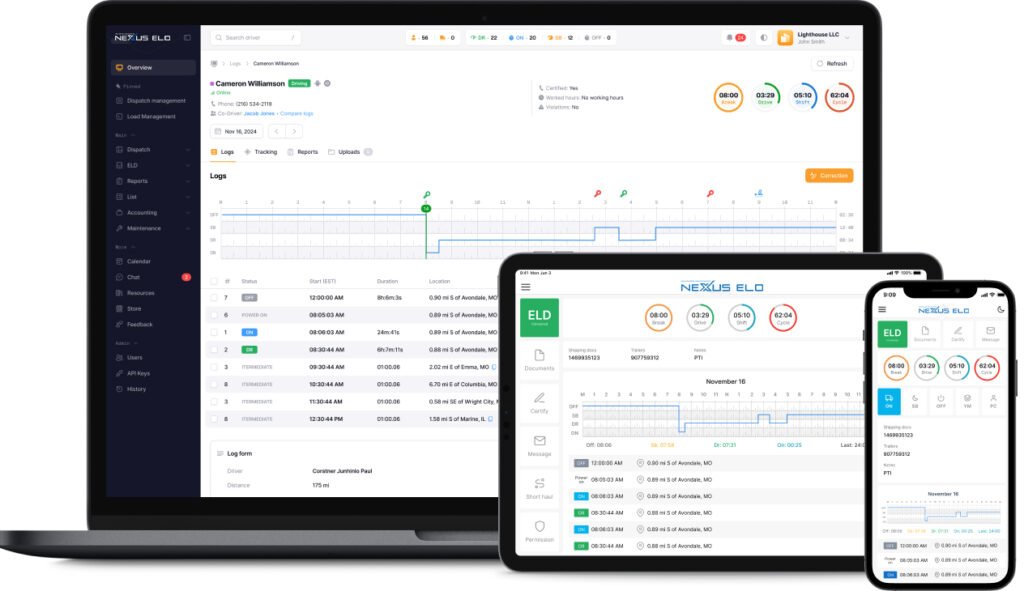 Stay compliant and connected with Nexus ELD—an industry-leading electronic logging solution packed with powerful, easy-to-use features for drivers and fleet managers.